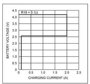 低于 2.6V 的區(qū)域需要不同的充電技術(shù)。如果嘗試對(duì)放電電壓低于 2.6V 的電池充電,充電器會(huì)施加低值(“調(diào)節(jié)電流”)充電電流,直到電池達(dá)到 2.6V 電平。這是鋰離子電池過度放電時(shí)的行為所必需的安全機(jī)制。當(dāng) VBATT < 2.6V 時(shí)強(qiáng)制快速充電電流可能會(huì)導(dǎo)致電池進(jìn)入不可逆的短路狀態(tài)。