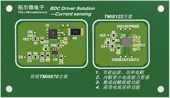 拓爾微TMI8123是一顆高耐壓,高集成度的全能型直流有刷馬達驅動,峰值電流高達10A,有著更強的電流能力,適用于按摩椅、掃地機、吸塵器等大電流智能市場應用。內部集成電流感應和反饋功能,0.2ohm @1A超低內阻,功耗更小,滿足大部分電機驅動的所有要求。