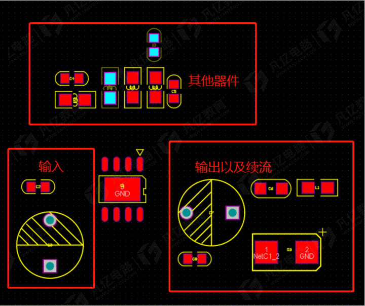 3.把輸入輸出以及續流通道的器件先拿出來,其他器件可以先不用管