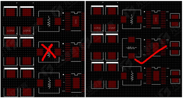 14.打孔換層的位置須考慮濾波器件位置,輸入應打孔在濾波器件之前,輸出在濾波器件之后。