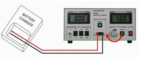 圖 1. 使用電池模擬器進行充電器測試的圖示。圖片由ACCEL 儀器提供