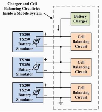 圖 2. 用于仿真電池組以測試電池平衡電路的多個仿真器的圖示。圖片由ACCEL 儀器提供