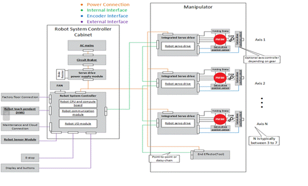 最近,分散式或分布式架構(圖 2)在具有較低功耗要求的系統中越來越受歡迎,并已成為協作機器人機械手的標準方法。