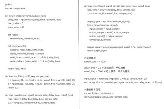 創建一個DSP混響的效果器。以下圖(13)是一個使用Python和NumPy庫實現的簡單DSP混響效果的示例代碼: