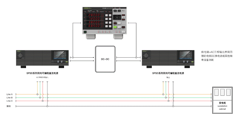 車用氫燃料電池升壓DC-DC測試是指對汽車使用的氫燃料電池升壓裝置系統(tǒng)進(jìn)行轉(zhuǎn)換效率的測試。燃料電池電動汽車的核心就是燃料電池的輸出供電。燃料電池將氫氧轉(zhuǎn)變?yōu)榈蛪弘娔埽?通過 DC-DC 升壓后給動力電池充電同時給電機控制器供電驅(qū)動電機運轉(zhuǎn),在實際量產(chǎn)測試時由于功率密度高(一般為 60-120kw 電堆)、電壓高(燃料電池直接輸出 200V 左右,DC-DC 升壓后達(dá)到 600V 左右)、電流高(200A-300A 左右),測試一直是個難題。