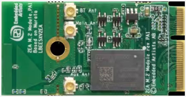 圖 2:AIROC CYW55573 的 EAR00413 評估板采用 M.2 外形。(圖片來源:Embedded Artists AB)