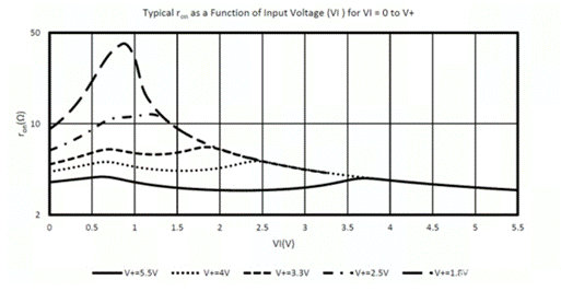 1. 導通電阻(Ron)隨輸入信號(VIN)變化而變化