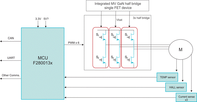 圖 4 展示了如何在電機驅動單元中添加 GaN。