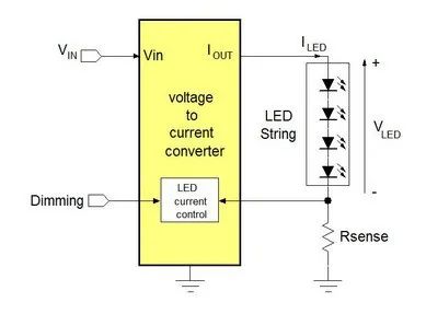 LED 驅動器調節的是穩定輸出電流,而不是穩定輸出電壓,因為LED特定的光輸出是完全由電流來決定。大多數高亮度LED 的正向電壓是 3〜3.5V;而根據輸入電壓和 LED 串中 LED 的數量,轉換器可以是降壓,升壓或升-降壓型。