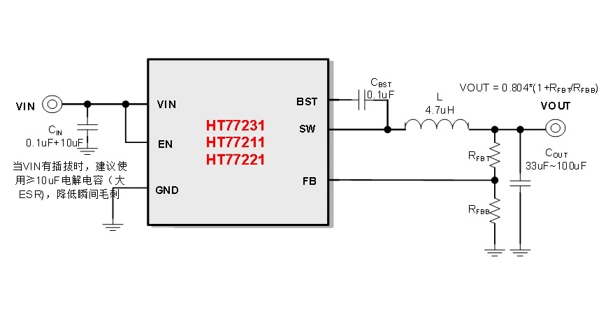 HT77221: 2A降壓,內置100mΩ和60mΩ功率管 ;