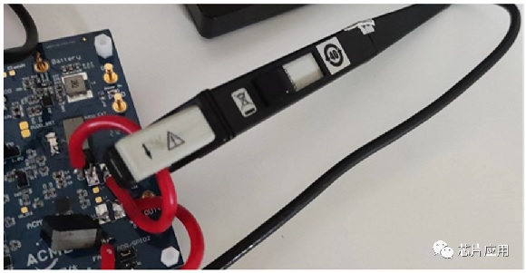 測試過程中需要把電感翹起來,電感的另一頭用粗的導線焊接到焊盤上,電流探頭夾住導線。