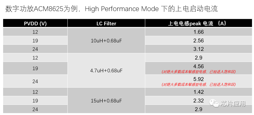 2) 很多情況,輸出的喇叭線上電流可能很小,不到2A,但是由于電感感值選得太小,會出現啟動共模電壓的建立過程就超過2.5A的情況。