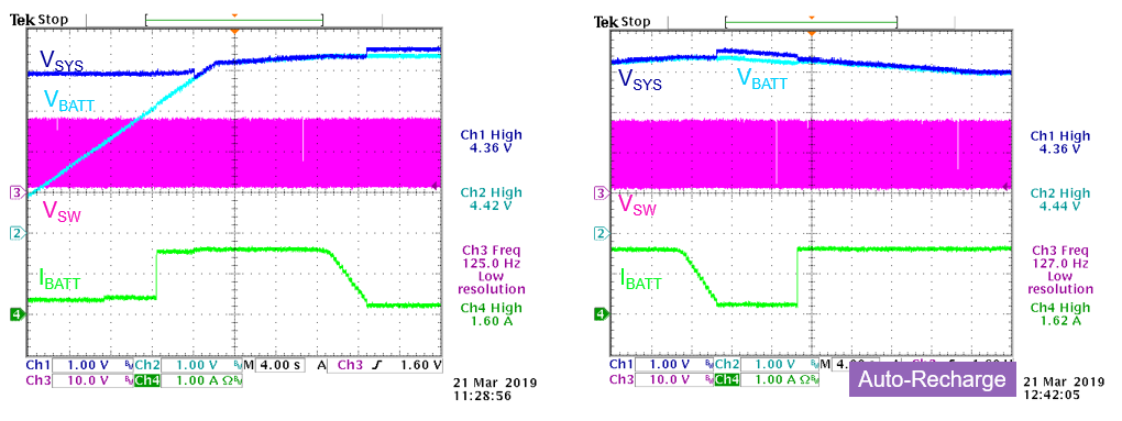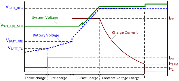 當電池電壓比較低的時候,會把系統(tǒng)調(diào)節(jié)到最低的工作點,然后使用Battery FET給電池進行涓流/預充電,當電池電壓高到一個閾值時,會把電池和系統(tǒng)接在一起,進行快速充電,電池充滿后,系統(tǒng)會再高一點點,保證壓差。