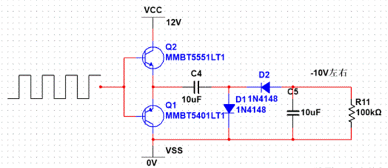 另外由電容、二極管和振蕩器組成的負壓電荷泵也能實現負電壓,由于二極管的存在會損失一部分壓降,容易受負載影響且紋波較大,輸出能力有限,對電源質量要求高的建議不要使用。