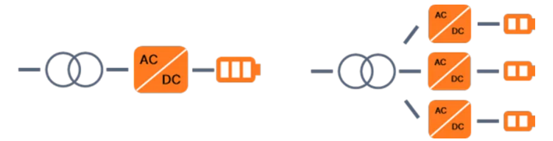 新一代分布式電池儲能系統(tǒng)可以解決集中式系統(tǒng)的缺點。當多個電池組并聯(lián)時,容易造成電池組之間的不平衡,導致某些電池組長期過度使用,最終影響電池系統(tǒng)的整體性能。相比之下,分布式系統(tǒng)可以實現(xiàn)子系統(tǒng)的分散管理,使維護工作變得更加容易,并提高系統(tǒng)的使用壽命,從而增加電池的充電循環(huán)次數(shù)。同樣的,光伏逆變器系統(tǒng)也具有這些特點和趨勢。