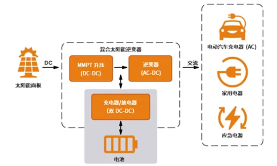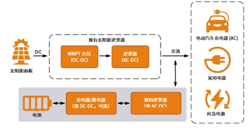電池儲能系統(tǒng)目前分為兩類,即交流耦合系統(tǒng)和直流耦合系統(tǒng)。交流耦合電池儲能系統(tǒng)是一個獨立的系統(tǒng),可以添加到現(xiàn)有的光伏/發(fā)電系統(tǒng)/電網(wǎng)中,因此易于升級。然而,它需要額外的功率轉(zhuǎn)換級來實現(xiàn)完全充/放電,因此損耗較高。另一方面,直流耦合系統(tǒng)可通過連接到直流母線以提供額外的儲能能力,通常用于住宅混合光伏逆變器。它只涉及一個DC-DC轉(zhuǎn)換步驟,因為直流母線電壓通常較高,可能會帶來安全或改裝方面的挑戰(zhàn),需要在產(chǎn)品設計時提前做出考慮。