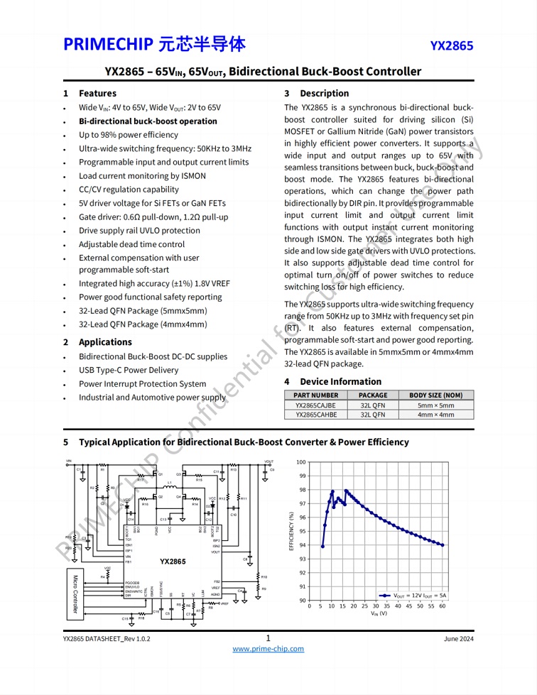 YX2865提供兩種封裝規格,分別為5x5mm和4x4mm的32引腳QFN封裝,方便工程師選擇合適的方案進行設計,可廣泛應用于雙向降壓-升壓DC-DC電源、USB Type-C電源傳輸、電源中斷保護系統以及工業和汽車電源等領域。