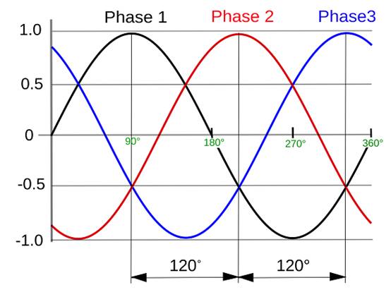 圖 1.三相電源序列圖。圖片由Wikipedia Commons提供