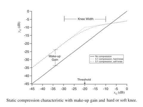 具有增益補(bǔ)償和硬或軟拐點(diǎn)的靜態(tài)壓縮特性圖
