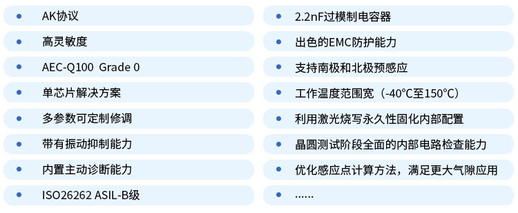 汽車中的輪速傳感器至關重要,助力準確掌控車速,提高行駛安全與穩(wěn)定度。在選擇此類傳感器時,應根據(jù)需求選取適用類型,確保其性能與可靠性。對此,賽卓電子推出新一代具備功能安全ASIL-B的霍爾輪速傳感器平臺SC9684(AK數(shù)字協(xié)議脈沖信號),專為汽車輪速探測領域設計,旨在提供卓越的輪速類解決方案,滿足更高精度的速度+方向測量。從而幫助客戶提高輪速傳感器的國產化率,保障供應鏈穩(wěn)健安全。