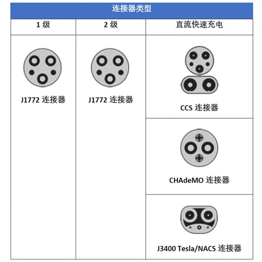 就像我們有不同的充電機級別來區分功率級別一樣,充電機所使用的連接器也有不同的標準。