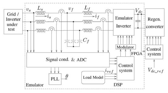 負載仿真的主要目標是為實際電氣負載設計電源接口。它可以控制電源轉換器,同時通過在多個功率級別實時仿真負載來促進系統驗證。負載仿真的兩個重要方面包括仿真目標的建模和設計有效的控制器[4]。圖 1顯示了電氣負載仿真器的示例原理圖。