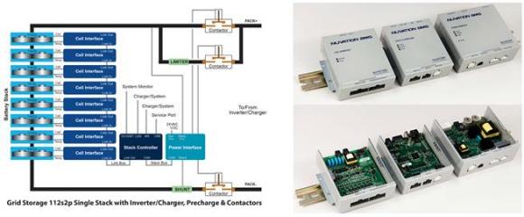 圖 2.Nuvation Engineering 電池管理系統(tǒng)是交流電網(wǎng)和電池電芯陣列之間的接口;它提供先進(jìn) 的電池充電/放電監(jiān)控以及 DC/AC 逆變器功能