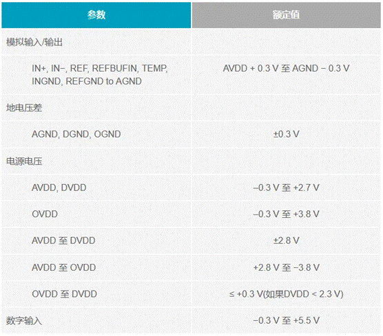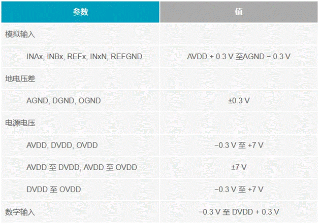 AD7794 Σ-Δ型24位ADC是另一個很好的例子。表3摘自AD7794 (Rev. D)數據手冊的“絕對最大額定值”部分。