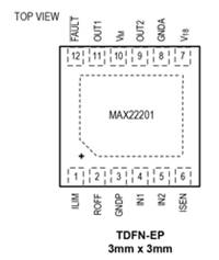 該器件采用小型TDFN12 3mm x 3mm封裝。MAX22201/2/7具有小尺寸封裝、高效率并集成準確的電流檢測功能,因此非常適合空間和功耗敏感型應用,比如有刷直流電機驅動、鎖閉閥和電磁閥以及單相步進電機驅動。