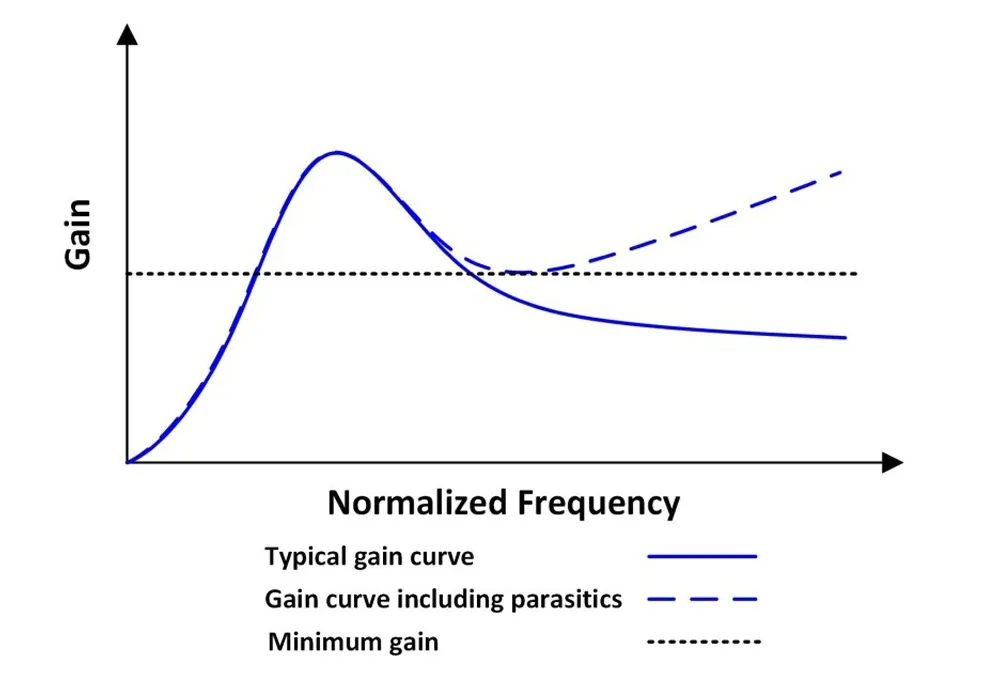 圖 3. 在禁用突發模式的情況下,增益曲線將開始在較高頻率處攀升