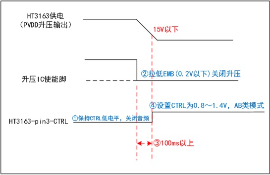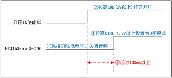 HT3163單聲道功放芯片AB類/D類切換-CTRL管腳時序圖