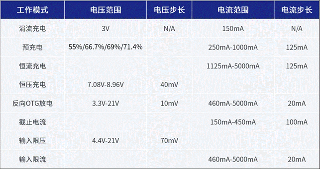SC8911 支持充/放電模式及相關參數