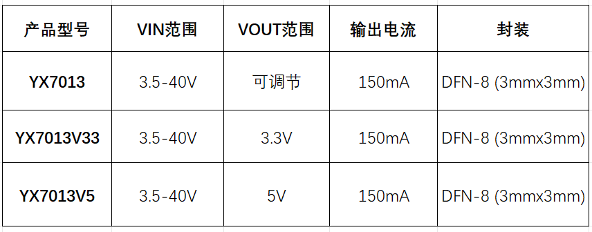 | YX7013 40V/150mA高性能低靜態(tài)功耗LDO穩(wěn)壓器 |