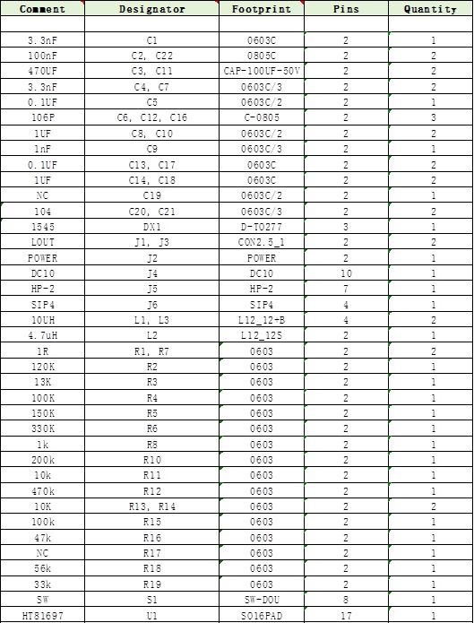 9、HT81697 DEMO板物料清單