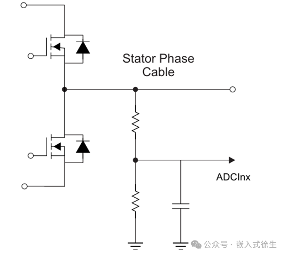 過零檢測,無感控制的常用策略是通過檢測反電動勢的變化,判斷無刷電機的轉子位置,如圖所示為無感控制的反電動勢檢測電路。