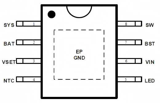 - 效率94% (VIN = 5V, VBAT = 8V, ICHG = 1A)