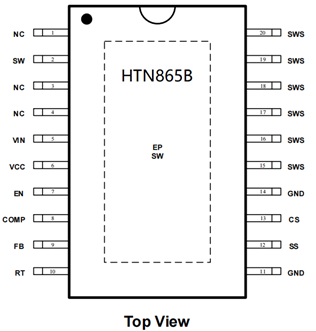 HTN865B采用峰值電流模式控制和外置補償網絡,更簡單更靈活的使系統穩定。
