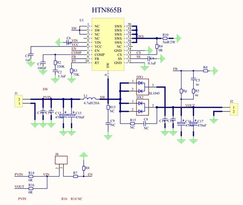 HTN865B具有2.8V至36V寬輸入電壓范圍,可為不同應用的不同供電方式提供支持。該器件具備20A開關電流能力,并且能夠提供高達36V的輸出電壓。