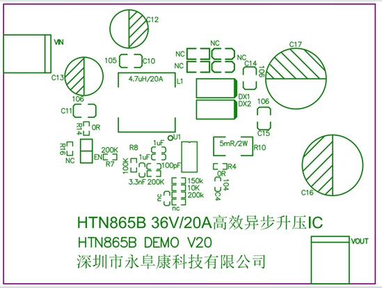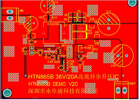 深圳市永阜康科技有限公司針對大功率的升壓應用需求,推廣一款集成20A開關管的36V輸出、大電流非同步DC-DC升壓IC-HTN865B。HTN865B采用獨到的電路研發技術以及先進的半導體工藝,重載時高達95%以上的工作效率,無需外加散熱器,可穩定輸出150W。