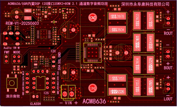 深圳市永阜康科技有限公司一直專注于音頻領域的耕耘,現在大力推廣一款內置DSP、60W+2X30W大功率I2S輸入2.1聲道數字功放芯片-ACM8636。供電電壓范圍在