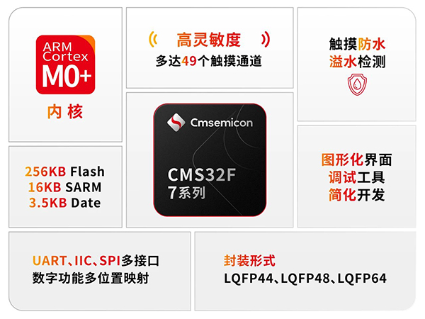 CMS32F759/737系列定位“大資源、高性能、高可靠性”,芯片集成多種資源,有助于降低系統設計成本,其發布標志著中微半導在32位觸控技術領域的重大突破。