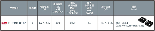 新產品通過采用引腳間距縮小至0.35mm的WLCSP*1封裝,實現1mm²以下的超小尺寸,同時兼具超低靜態電流特性,工作時的電路電流可控制在業界超低的160nA(Typ.)。由此,該新產品不僅能在有限的空間內實現高密度安裝,還能大大延長電池壽命和應用產品的續航時間。