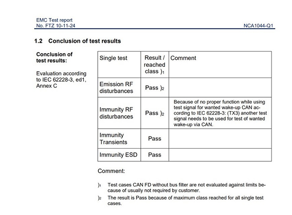 NCA1044-Q1通過IBEE/FTZ-Zwickau EMC認證