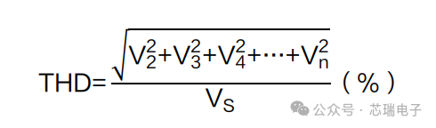 總諧波失真(THD,Total Harmonic Distortion)是指信號中存在的各諧波成分相對于基波的總和。總諧波失真計算公式如下: