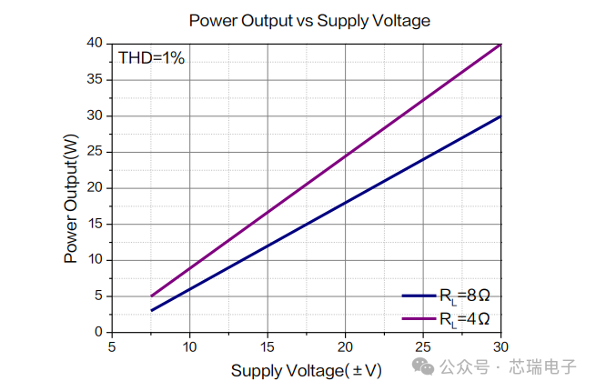 輸出功率指在指定電壓條件下,滿足一定的失真度時,音頻功放在負載上的輸出能力。輸出功率影響音頻信號的振幅, 體現在主觀感受上就是聲音的大小。