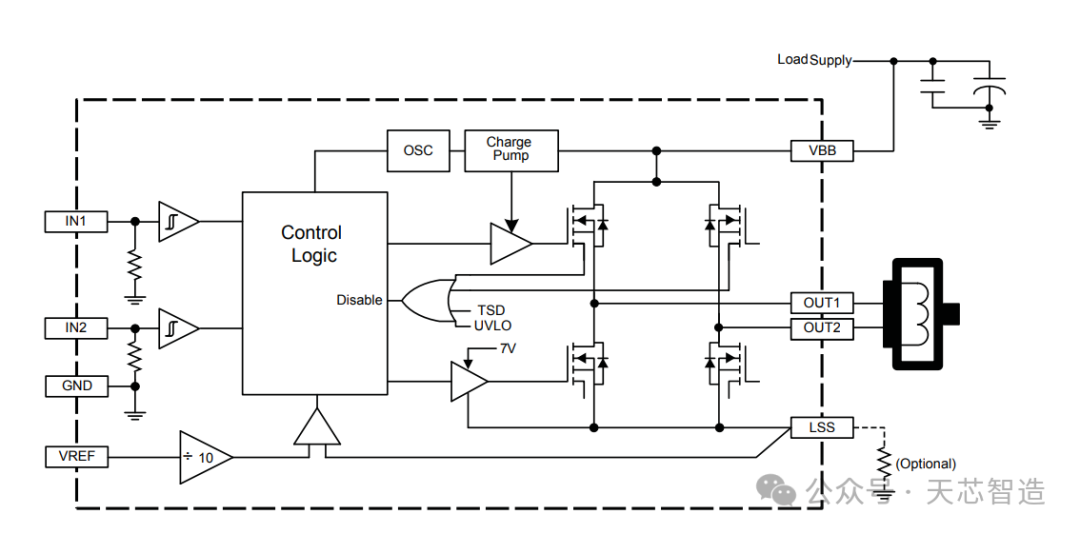 這款芯片方案類似RZ7889系列,是一顆SOP-8的封裝集成了H橋的方案,主打的就是集成度較高,且增加電流檢測(用于保護),很適合智能門鎖、小玩具等有刷電機驅動方案。