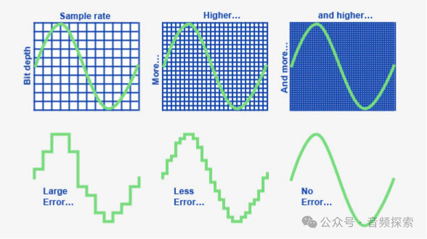 上一篇文章我們介紹到數字信號只能用有限的0/1的組合來表示無限的模擬信號,所以必須通過采樣率(Sample Rate)和比特深度(Bit Depth)來完成量化。那么什么是采樣率和比特深度?