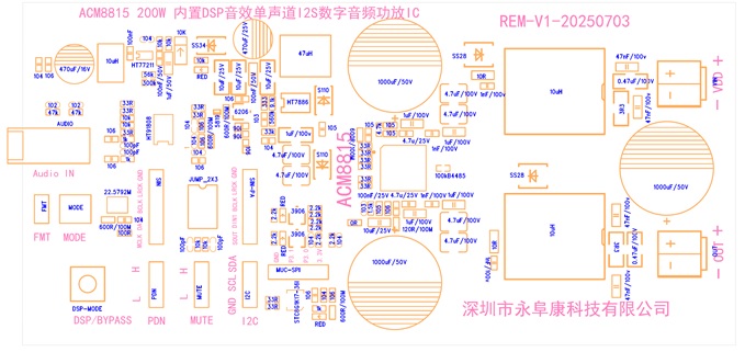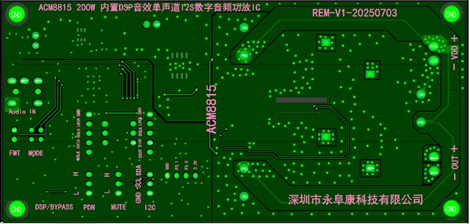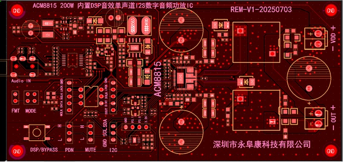 深圳市永阜康科技有限公司一直專注于音頻領(lǐng)域的耕耘,現(xiàn)在大力推廣內(nèi)置DSP的200W單聲道大功率I2S數(shù)字輸入D類功放芯片-ACM8815,助推音頻產(chǎn)品升級(jí)迭代。ACM8815是一款集成MOSFET,高效、高性能具有數(shù)字輸入的單聲道D類音頻放大器。外圍應(yīng)用電路只需要很少的無(wú)源元件,4.5V-38V寬泛工作電壓范圍。集成了11mΩRdson-MOSFEET,驅(qū)動(dòng)到4Ω可以在10%THD+N內(nèi)輸出1×200W的功率,高效率保證大功率輸出不需要散熱器。采用QFN-48(8.0mm×8.0mm)封裝。