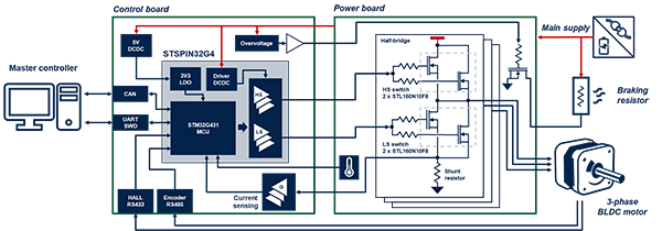 在此背景下,意法半導體的STSPIN32G4成為伺服驅動解決方案的理想選擇。該器件在單一緊湊型封裝中集成了高性能STM32微控制器、三半橋柵極驅動器及靈活電源管理電路,顯著節省物料成本。微控制器可處理最先進的電機控制算法,而驅動器憑借1A電流驅動能力及集成保護功能,可全面掌控功率級運行,及時檢測并消除故障狀態。
