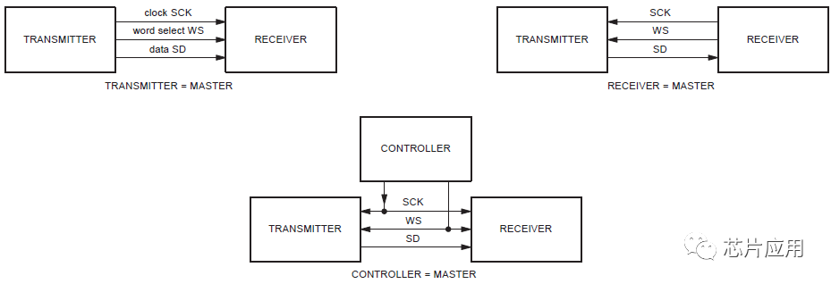 I2S是比較簡單的數字接口協議,沒有地址或設備選擇機制。在I2S總線上,只能同時存在一個主設備和發送設備。主設備可以是發送設備,也可以是接收設備,或是協調發送設備和接收設備的其它控制設備。在I2S系統中,提供時鐘(SCKWS)的設備為主設備。圖3是常見的I2S系統框圖。